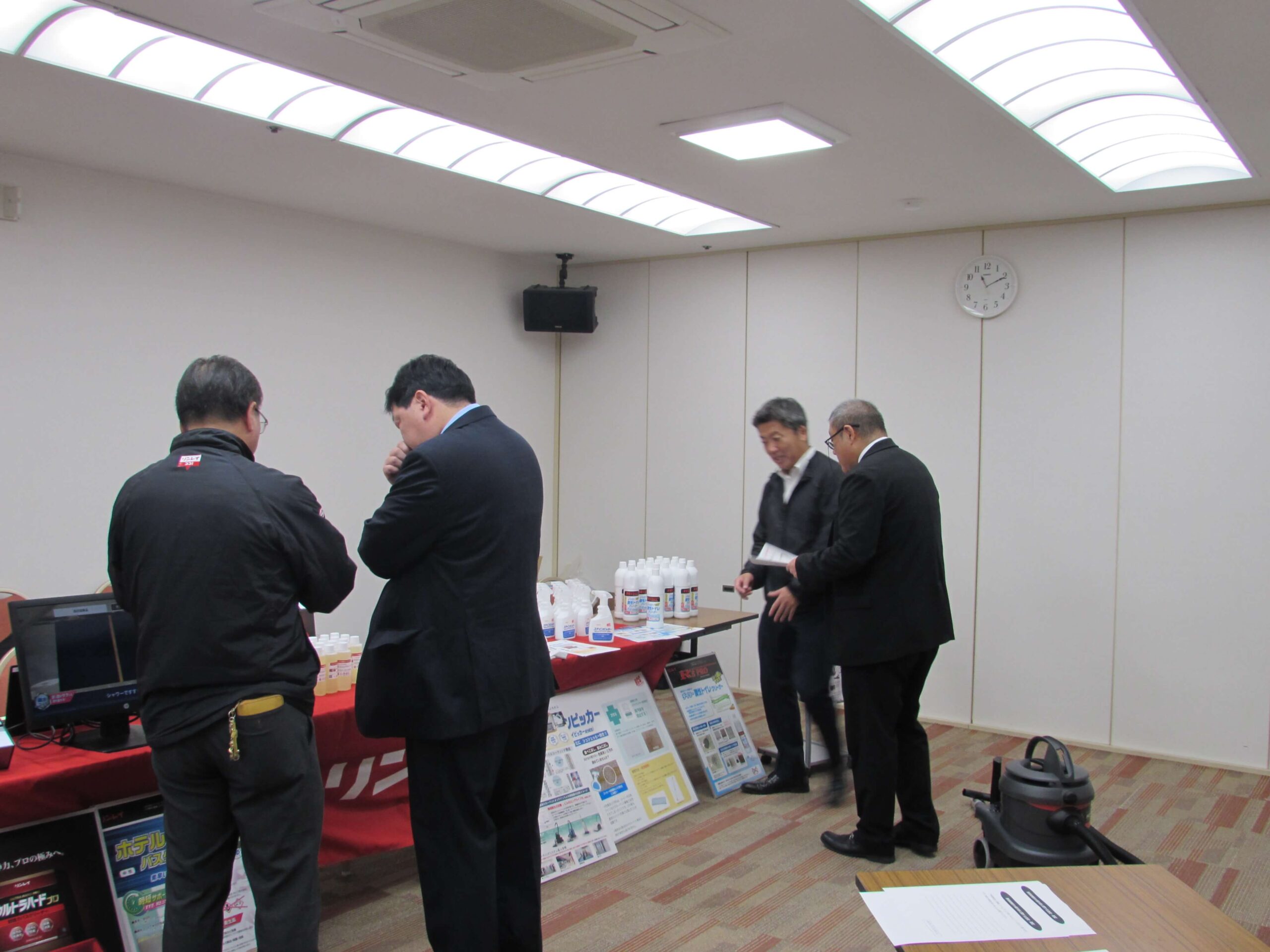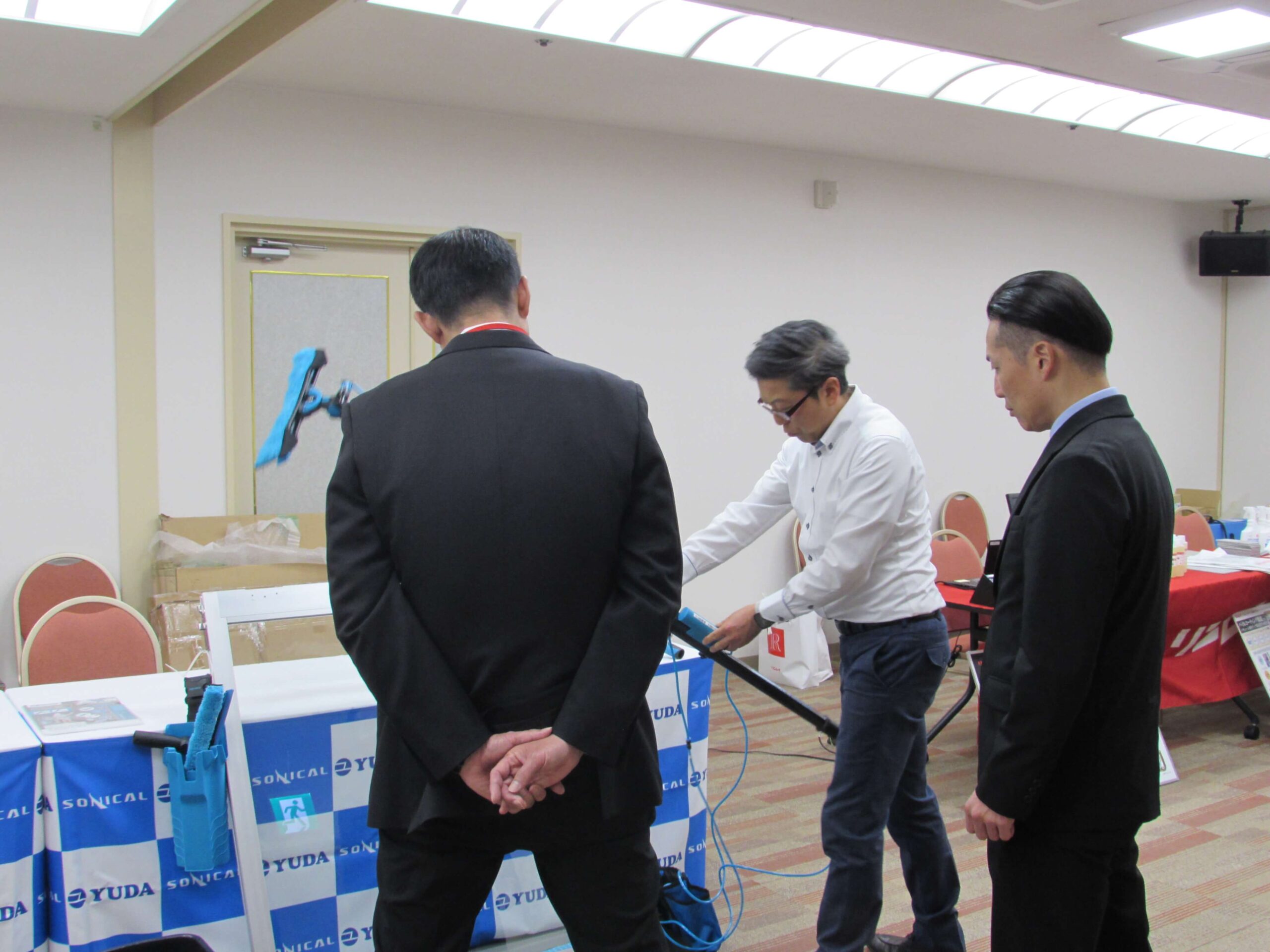 12月4日の午前中、長野ターミナル会館(長野市)において、賛助会員企業3社様のご協力を得て「清掃資機材の展示会」を開催しました。2時間半ほどの間に15名ほどの来場者があり、展示品について説明を受けたり、実際に操作を体験しながら資機材の使い勝手などを確認する機会となりました。